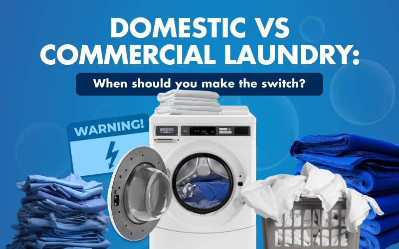 Domestic and commercial laundry equipment may look similar on the surface, but they’re designed for very different workloads. Understanding where that line gets crossed – and why it matters – can save operators time, money and a lot of disruption in the long run.